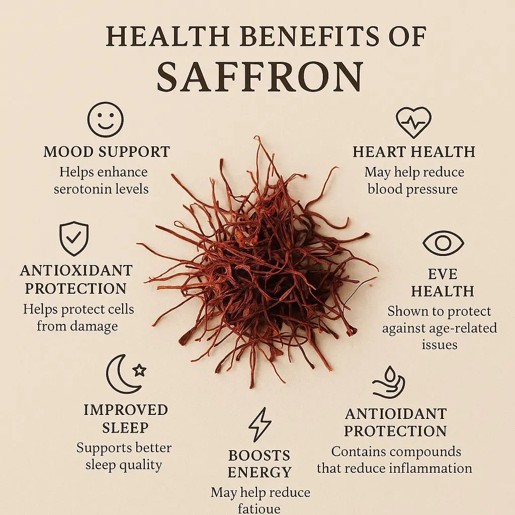 Incorporating saffron into your daily wellness routine not only nurtures your mental state but also gives your body extra support at the cellular level. This rare and precious spice blends emotional harmony with physical vitality — a natural ally for both mind and body.